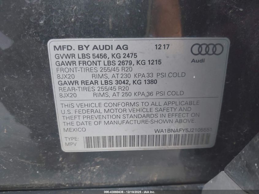 2018 AUDI Q5 2018 року Бензин, 2.0, Полный привод, vin - WA1BNAFY5J2105551 из США