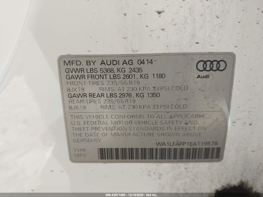 2014 AUDI Q5 2014 року Бензин, 2.0, Полный привод, vin - WA1LFAFP1EA119578 из США