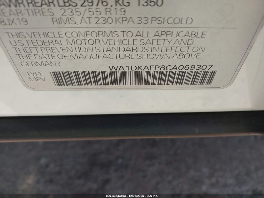 Цвет БелыйЦилиндры 6Привод Полный приводVIN WA1DKAFP8CA069307Состояние Заводится и едет (проверено)Повреждения Задняя AutoRIA