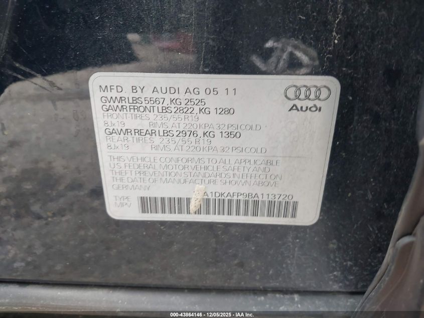 2011 AUDI Q5 2011 року Бензин, 3.2, Полный привод, vin - WA1DKAFP9BA113720 из США
