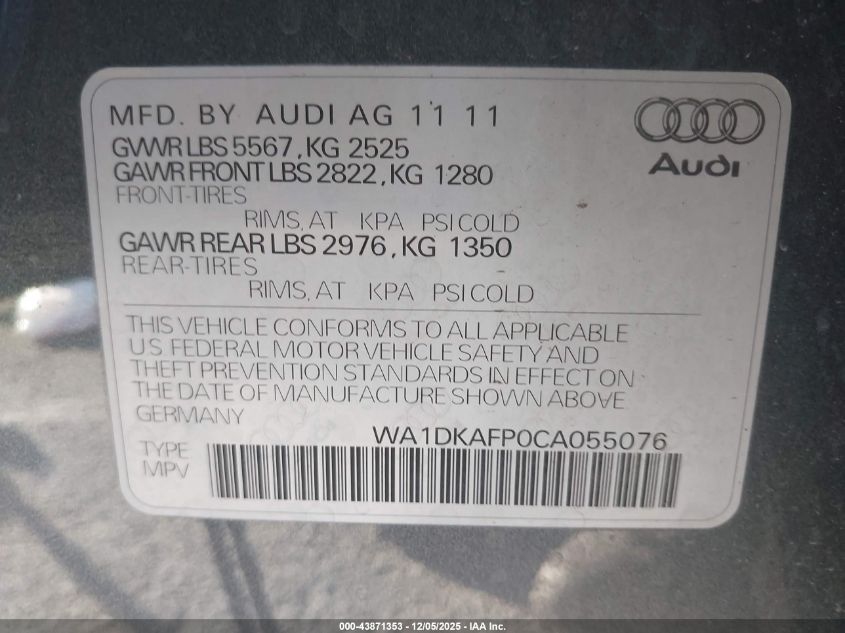 2012 AUDI Q5 2012 року Бензин, 3.2, Полный привод, vin - WA1DKAFP0CA055076 из США