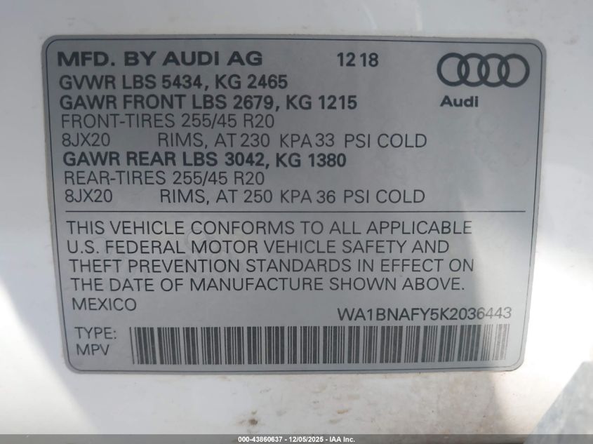 2019 AUDI Q5 2019 року Бензин, 2.0, Полный привод, vin - WA1BNAFY5K2036443 из США