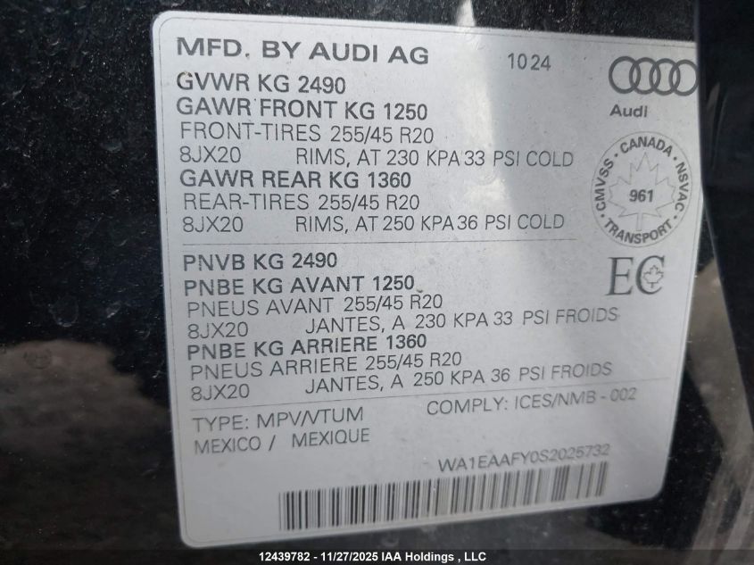 2025 AUDI Q5 2025 року Бензин, , Полный привод, vin - WA1EAAFY0S2025732 из США