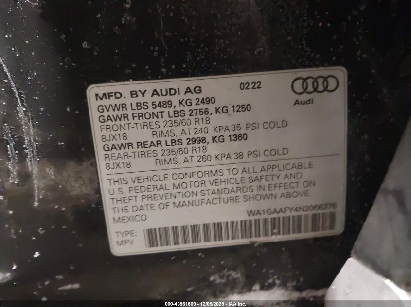 2022 AUDI Q5 2022 року Бензин, 2.0, Полный привод, vin - WA1GAAFY4N2066376 из США