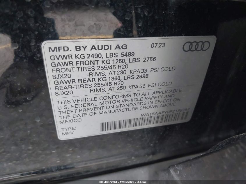 2023 AUDI Q5 SPORTBACK 2023 року Бензин, 2.0, Полный привод, vin - WA15AAFY8P2185297 из США
