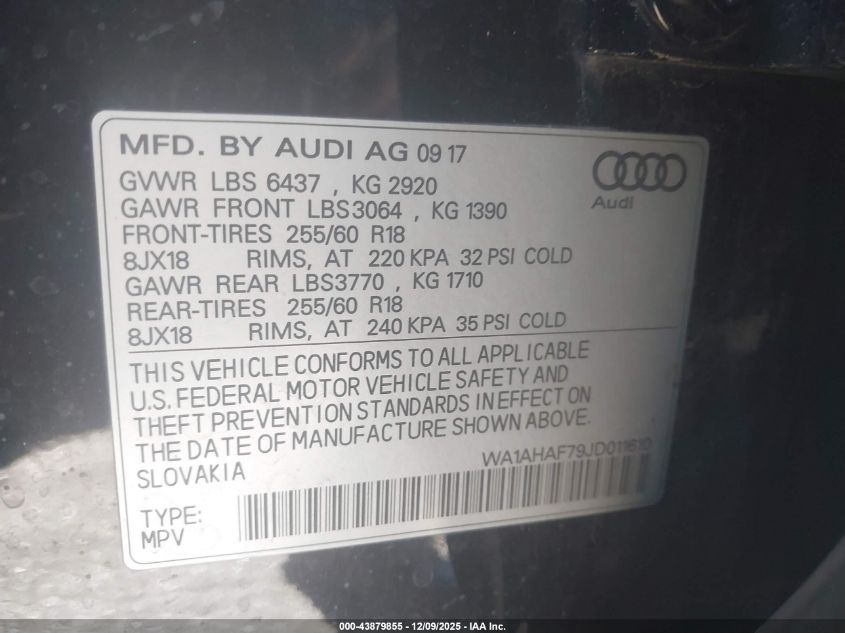 2018 AUDI Q7 2018 року Бензин, 2.0, Полный привод, vin - WA1AHAF79JD011610 из США