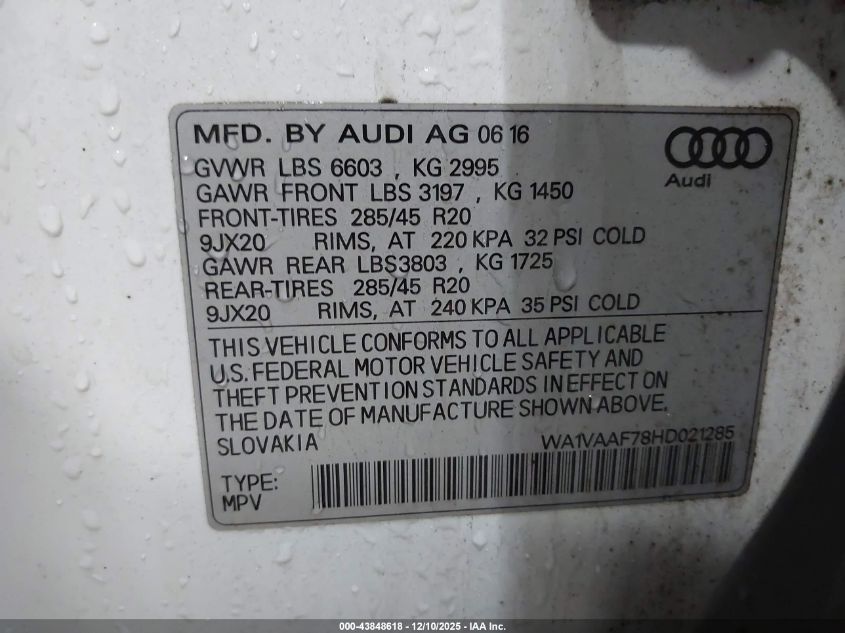 2017 AUDI Q7 2017 року Бензин, 3.0, Полный привод, vin - WA1VAAF78HD021285 из США