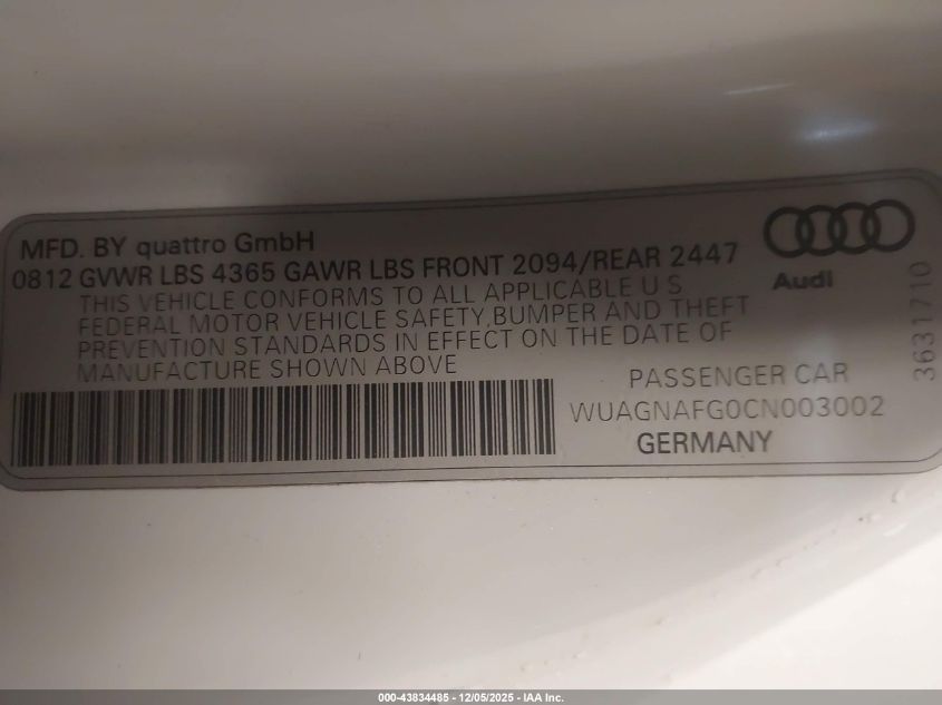 Цвет БелыйЦилиндры 10Привод Полный приводVIN WUAGNAFG0CN003002Состояние СтационарноПовреждения Передняя или задняя