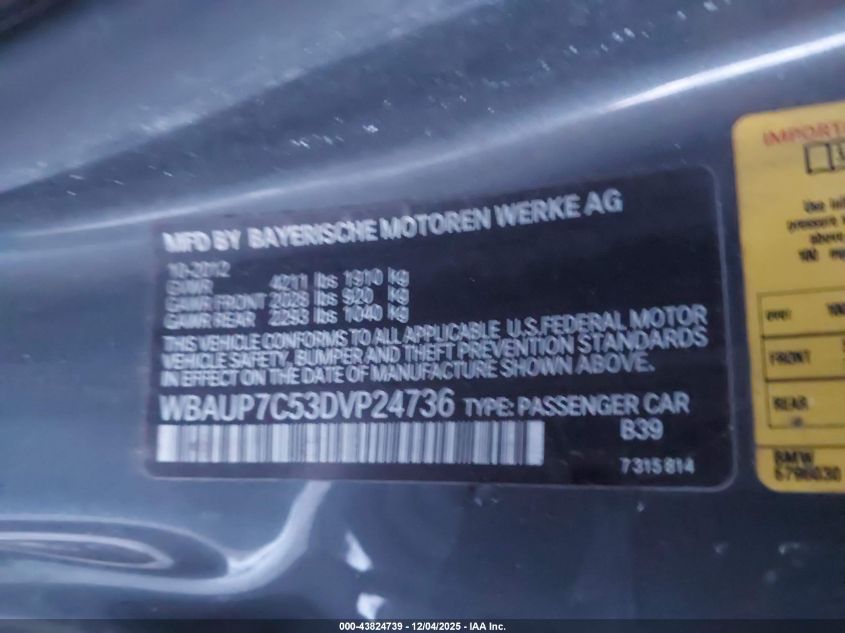 2013 BMW 1 SERIES 2013 року Бензин, 3.0, Задний привод, vin - WBAUP7C53DVP24736 из США
