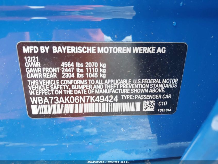 2022 BMW 2 SERIES GRAN COUPE 2022 року Бензин, 2.0, Полный привод, vin - WBA73AK06N7K49424 из США