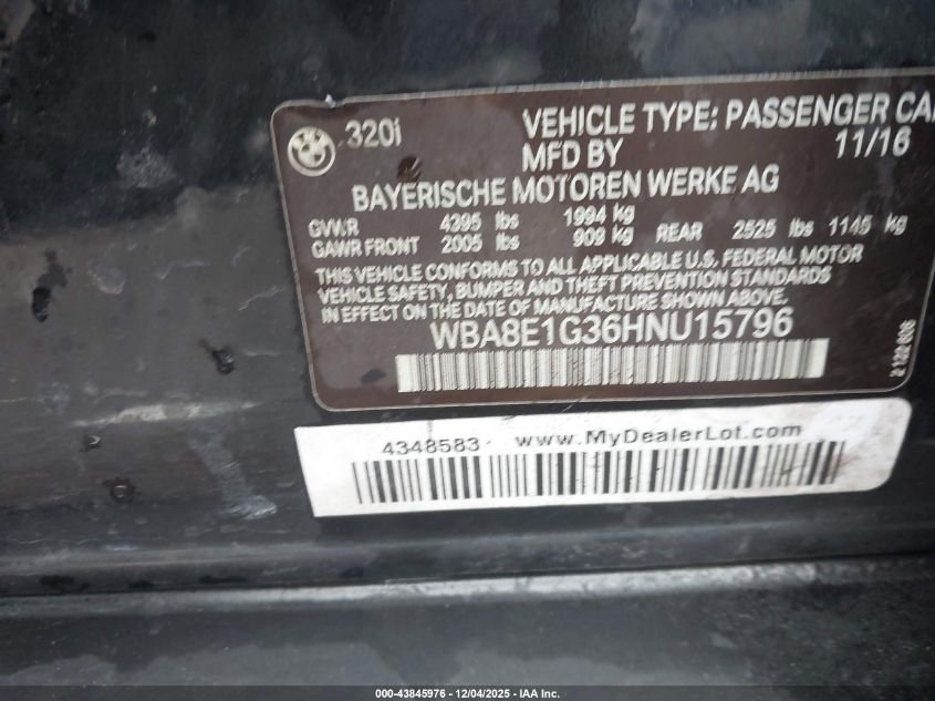 2017 BMW 3 SERIES 2017 року Бензин, 2.0, Задний привод, vin - WBA8E1G36HNU15796 из США