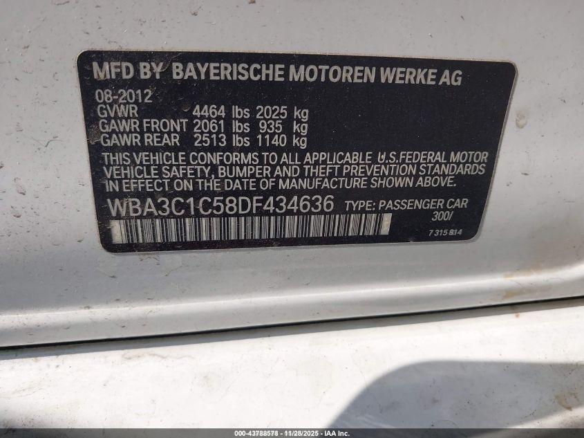 2013 BMW 3 SERIES 2013 року Бензин, 2.0, Задний привод, vin - WBA3C1C58DF434636 из США