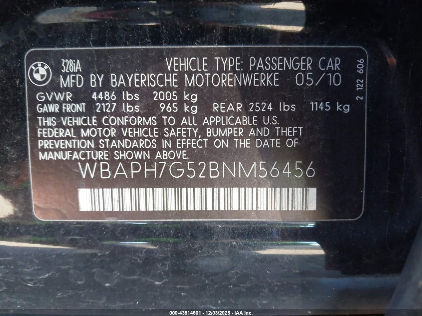 2011 BMW 3 SERIES 2011 року Бензин, 3.0, Задний привод, vin - WBAPH7G52BNM56456 из США