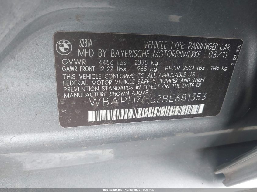 2011 BMW 3 SERIES 2011 року Бензин, 3.0, Задний привод, vin - WBAPH7C52BE681353 из США