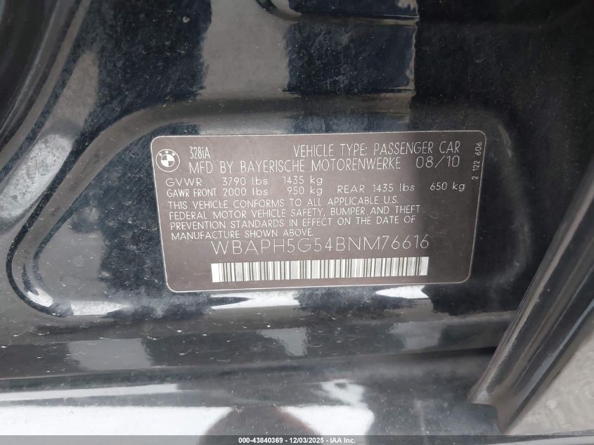 2011 BMW 3 SERIES 2011 року Бензин, 3.0, Задний привод, vin - WBAPH5G54BNM76616 из США