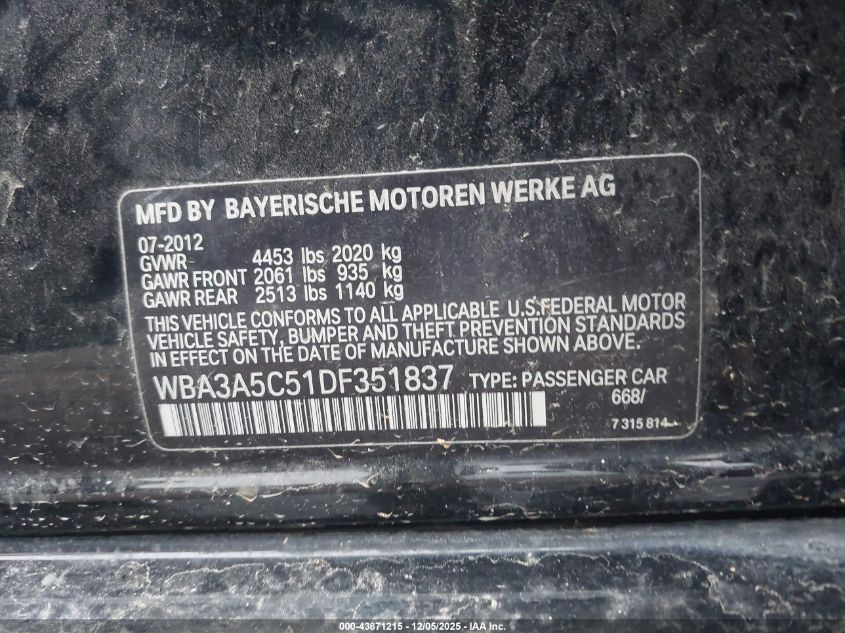 2013 BMW 3 SERIES 2013 року Бензин, 2.0, Задний привод, vin - WBA3A5C51DF351837 из США