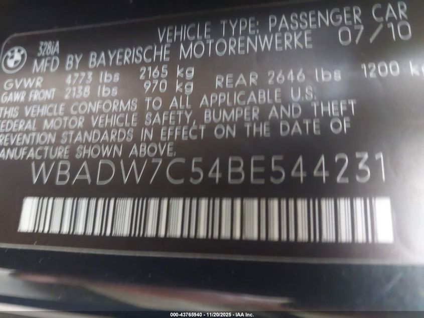 2011 BMW 3 SERIES 2011 року Бензин, 3.0, Задний привод, vin - WBADW7C54BE544231 из США