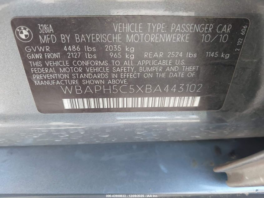 2011 BMW 3 SERIES 2011 року Бензин, 3.0, Задний привод, vin - WBAPH5C5XBA443102 из США