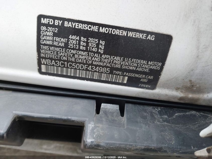 2013 BMW 3 SERIES 2013 року Бензин, 2.0, Задний привод, vin - WBA3C1C50DF434985 из США