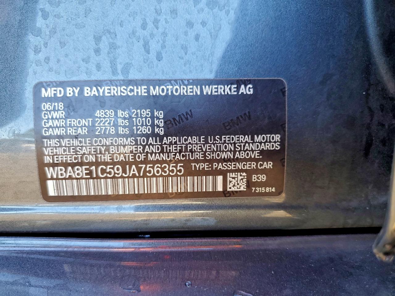 2018 BMW 3 SERIES 2018 року Гибрид, 2.0, Задний привод, vin - WBA8E1C59JA756355 из США