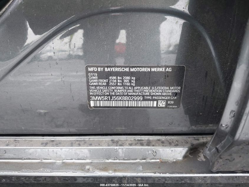 2019 BMW 3 SERIES 2019 року Бензин, 2.0, Задний привод, vin - 3MW5R1J56K8B02999 из США