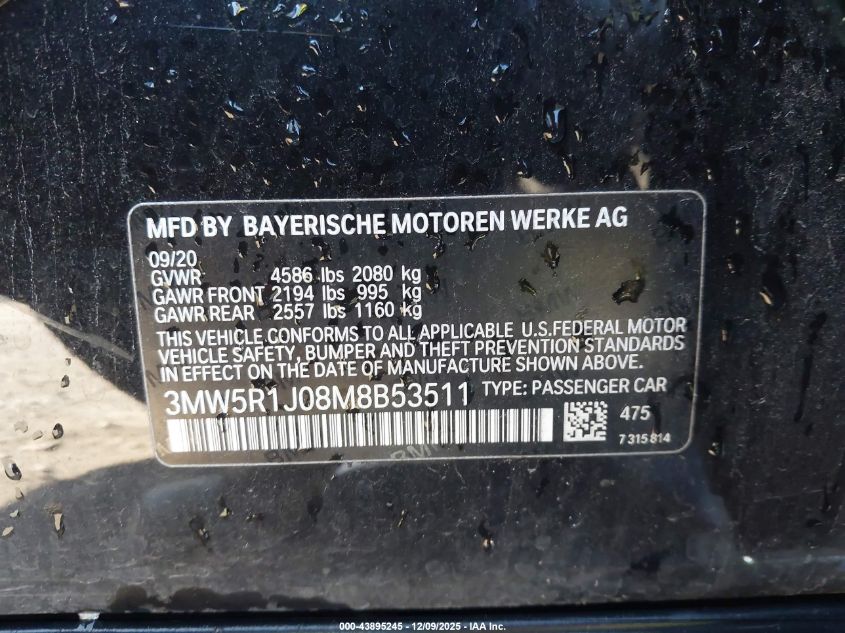 2021 BMW 3 SERIES 2021 року Бензин, 2.0, Задний привод, vin - 3MW5R1J08M8B53511 из США