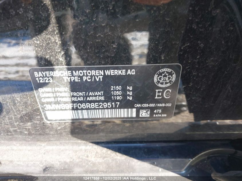 2024 BMW 3 SERIES 2024 року Бензин, , Полный привод, vin - 3MW89FF06R8E29517 из США