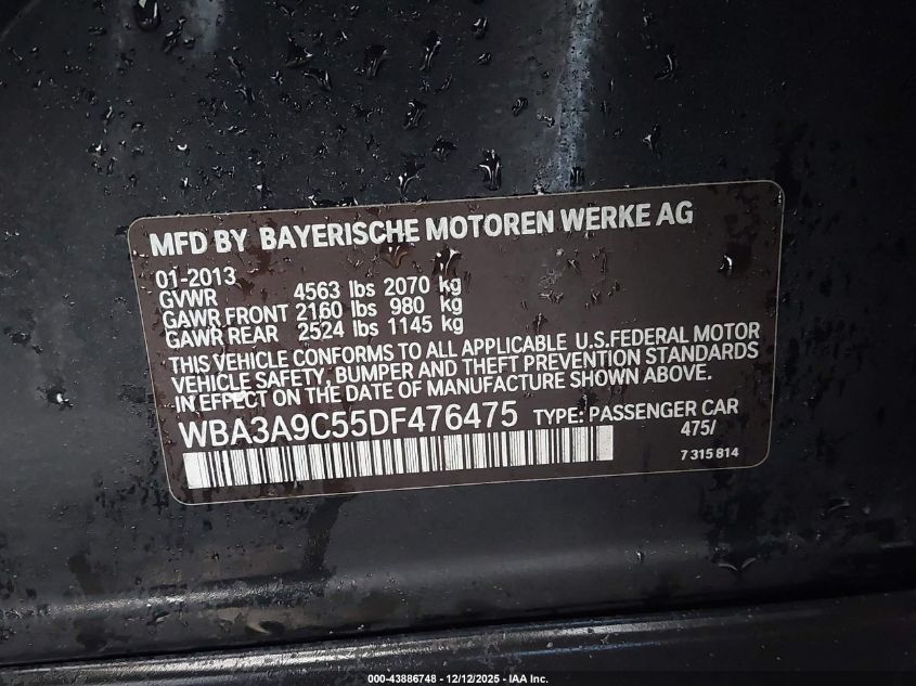 2013 BMW 3 SERIES 2013 року Бензин, 3.0, Задний привод, vin - WBA3A9C55DF476475 из США
