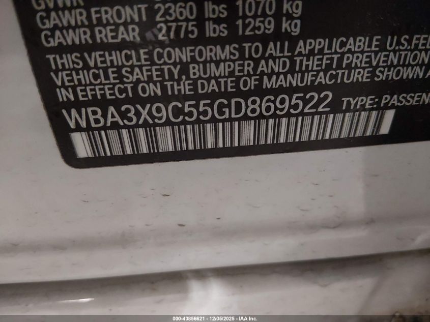 Цвет БелыйЦилиндры 6Привод Полный приводVIN WBA3X9C55GD869522Состояние СтационарноПовреждения По всему авто AutoRIA