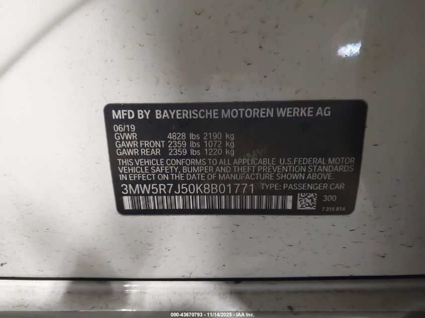 2019 BMW 3 SERIES 2019 року Бензин, 2.0, Полный привод, vin - 3MW5R7J50K8B01771 из США