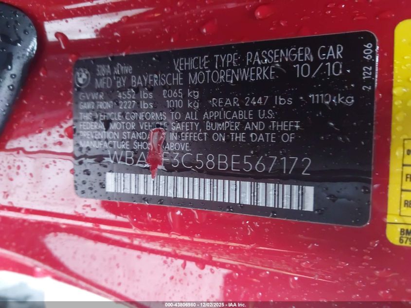 2011 BMW 3 SERIES 2011 року Бензин, 3.0, Полный привод, vin - WBAKF3C58BE567172 из США