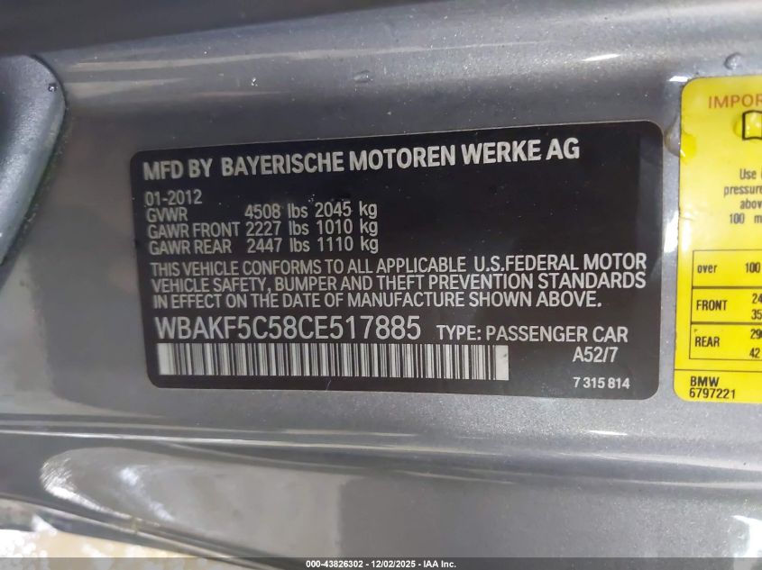 2012 BMW 3 SERIES 2012 року Бензин, 3.0, Полный привод, vin - WBAKF5C58CE517885 из США
