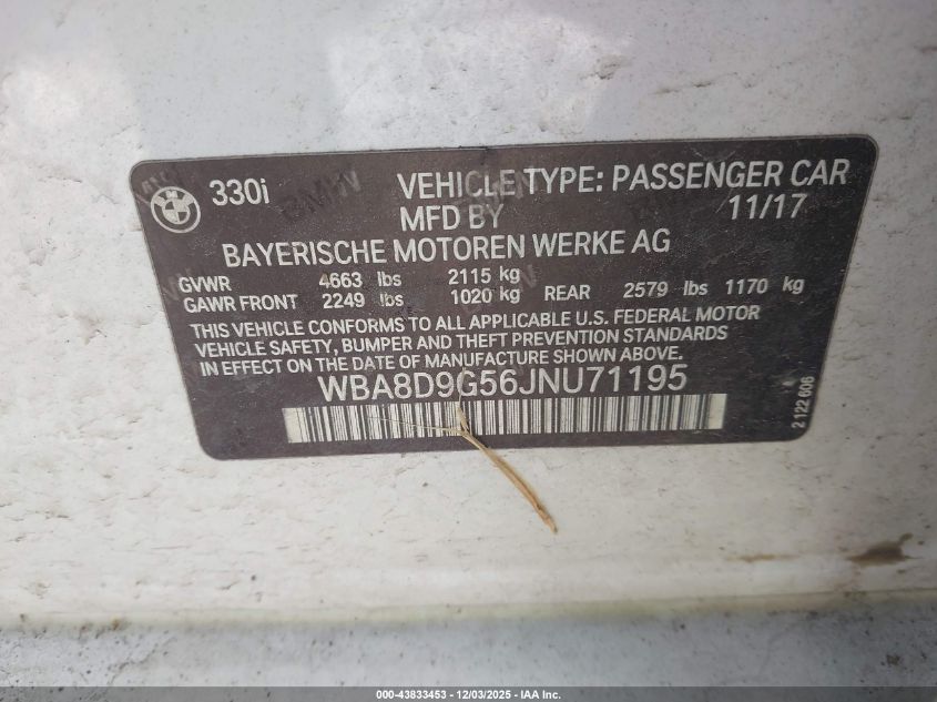 2018 BMW 3 SERIES 2018 року Бензин, 2.0, Полный привод, vin - WBA8D9G56JNU71195 из США