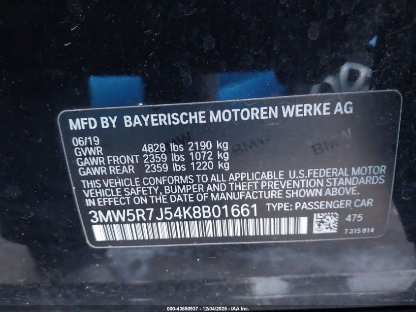 2019 BMW 3 SERIES 2019 року Бензин, 2.0, Полный привод, vin - 3MW5R7J54K8B01661 из США