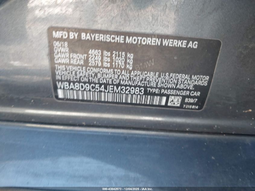2018 BMW 3 SERIES 2018 року Бензин, 2.0, Полный привод, vin - WBA8D9C54JEM32983 из США