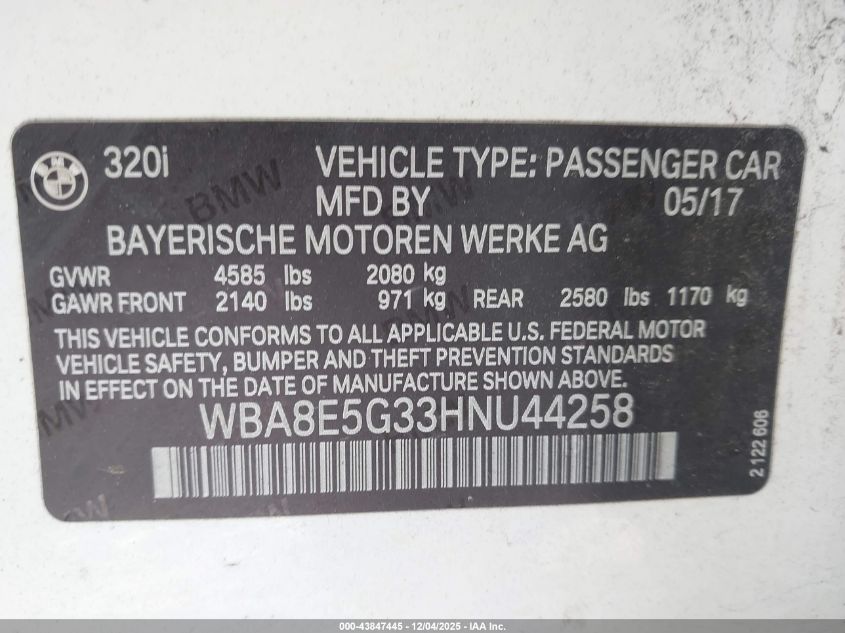 2017 BMW 3 SERIES 2017 року Бензин, 2.0, Полный привод, vin - WBA8E5G33HNU44258 из США