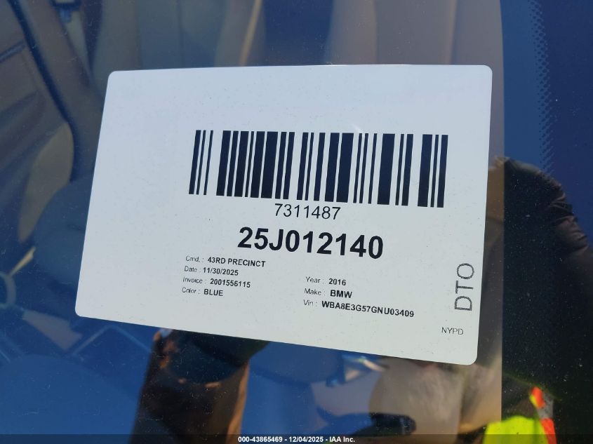 2016 BMW 3 SERIES 2016 року Бензин, 2.0, Полный привод, vin - WBA8E3G57GNU03409 из США