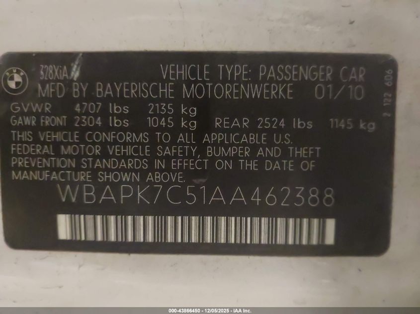 2010 BMW 3 SERIES 2010 року Бензин, 3.0, Полный привод, vin - WBAPK7C51AA462388 из США