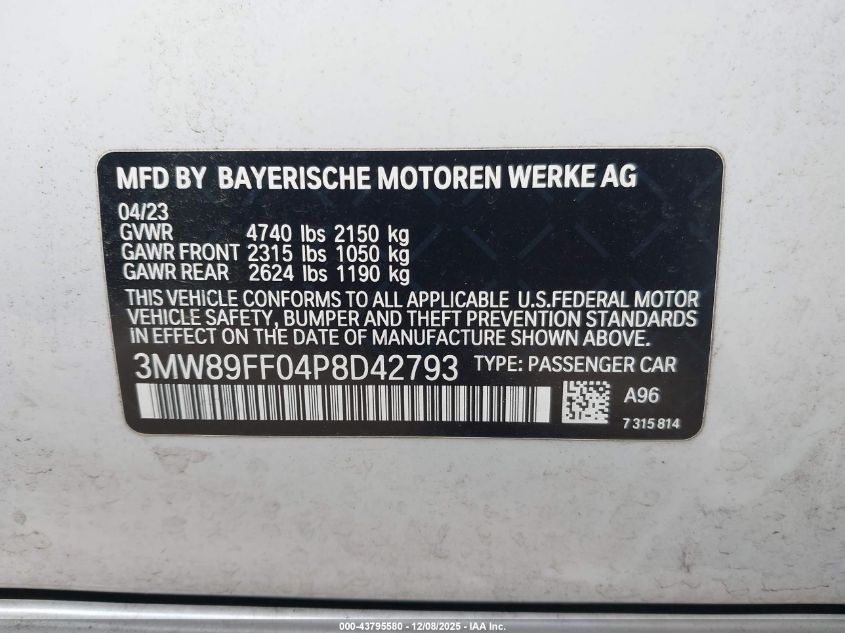2023 BMW 3 SERIES 2023 року Бензин, 2.0, Полный привод, vin - 3MW89FF04P8D42793 из США