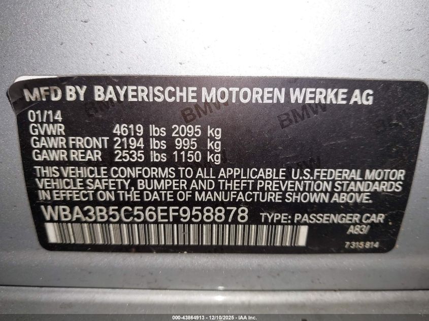 2014 BMW 3 SERIES 2014 року Бензин, 2.0, Полный привод, vin - WBA3B5C56EF958878 из США