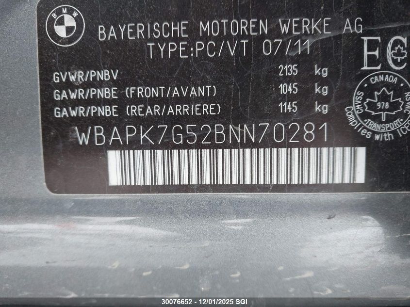 2011 BMW 3 SERIES 2011 року Бензин, , Полный привод, vin - WBAPK7G52BNN70281 из США