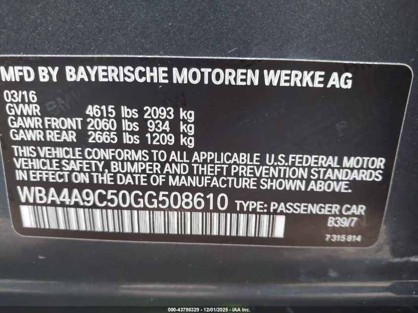 2016 BMW 4 SERIES XI GRAN COUPE SULEV