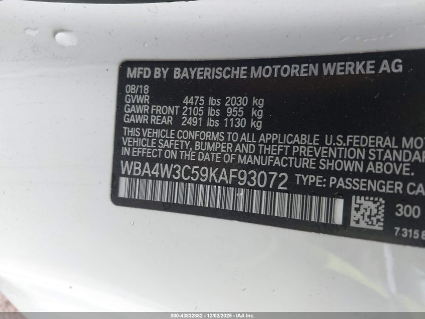 2019 BMW 4 SERIES 2019 року Бензин, 2.0, Задний привод, vin - WBA4W3C59KAF93072 из США