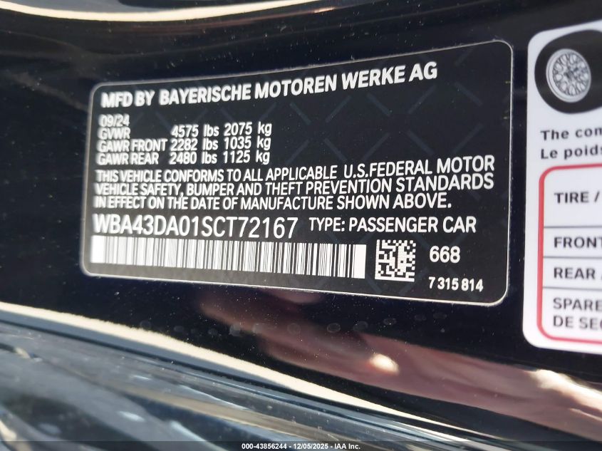 2025 BMW 4 SERIES 2025 року Бензин, 2.0, Задний привод, vin - WBA43DA01SCT72167 из США