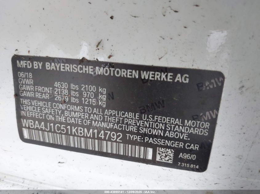 2019 BMW 4 SERIES 2019 року Бензин, 2.0, Задний привод, vin - WBA4J1C51KBM14792 из США