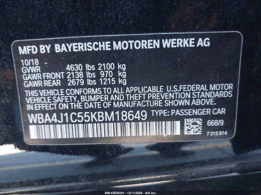 2019 BMW 4 SERIES 2019 року Бензин, 2.0, Задний привод, vin - WBA4J1C55KBM18649 из США