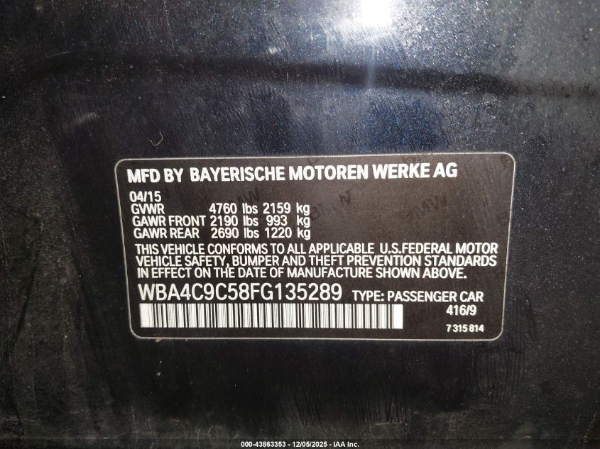 2015 BMW 4 SERIES 2015 року Бензин, 2.0, Полный привод, vin - WBA4C9C58FG135289 из США