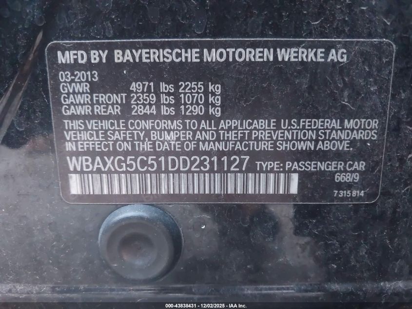2013 BMW 5 SERIES 2013 року Бензин, 2.0, Задний привод, vin - WBAXG5C51DD231127 из США