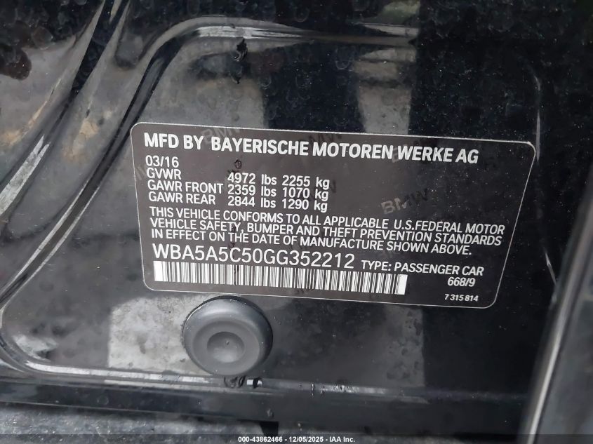 2016 BMW 5 SERIES 2016 року Бензин, 2.0, Задний привод, vin - WBA5A5C50GG352212 из США