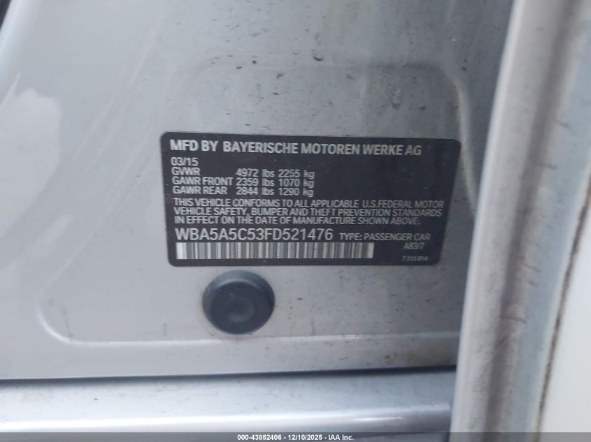 2015 BMW 5 SERIES 2015 року Бензин, 2.0, Задний привод, vin - WBA5A5C53FD521476 из США